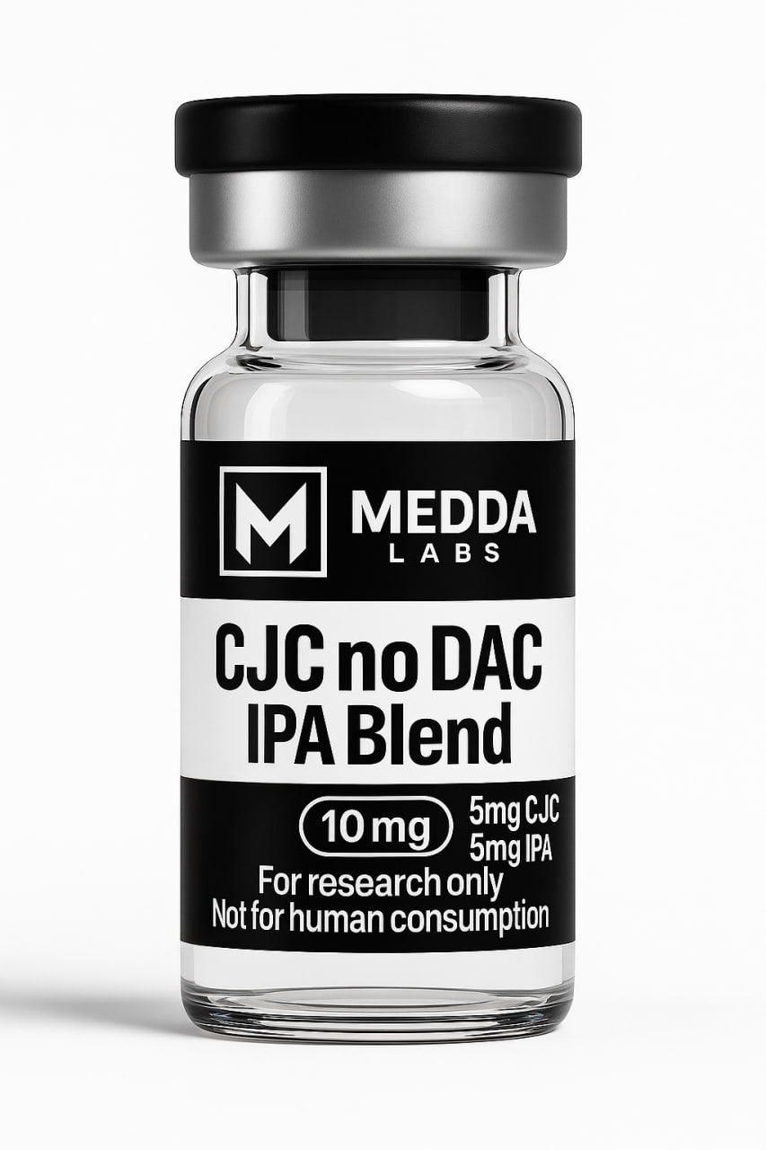 CJC-1295 (No DAC) + Ipamorelin is a dual-peptide formulation studied for its potential synergistic effects on growth hormone release, pituitary signaling, muscle recovery, and metabolic regulation.